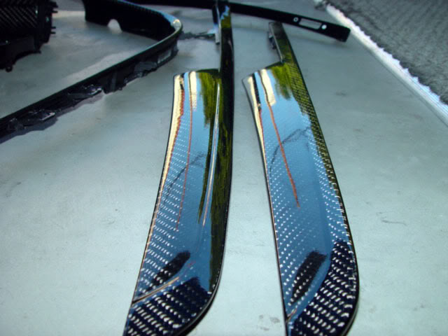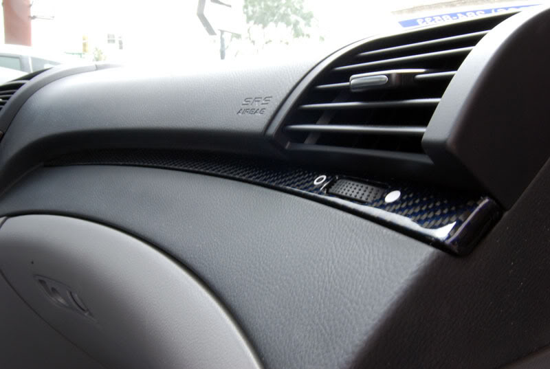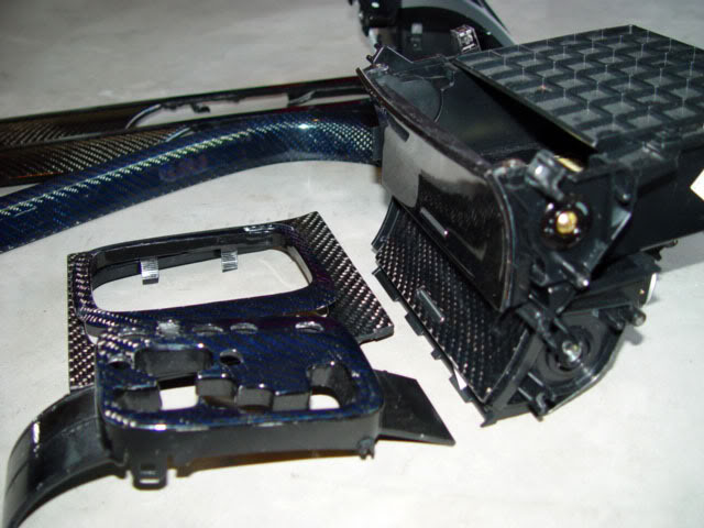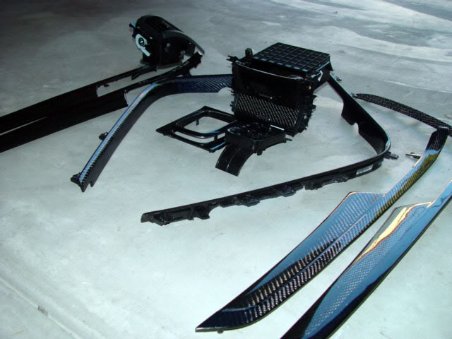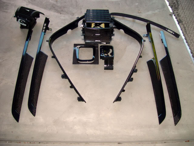 This is another one off custom made carbon fiber interior trims. Total of 13 pieces were made ( front driver and passenger doors, rear left and right passenger doors, instrument panel strip driver side and passenger side, center console, 2 pocket lid panel, outer shifter plate and inner shifter plate). The stock form of the silver trims are in blue carbon fiber and the stock form of the carbon fiber looks are in gray carbon fiber. Extremely hard to find. Took the fabricator 2 weeks to have this done since the door trim's blue carbon fiber and gray carbon fiber are integrated. The weaves on the blue carbon fiber and the gray carbon fiber are in opposite directions.