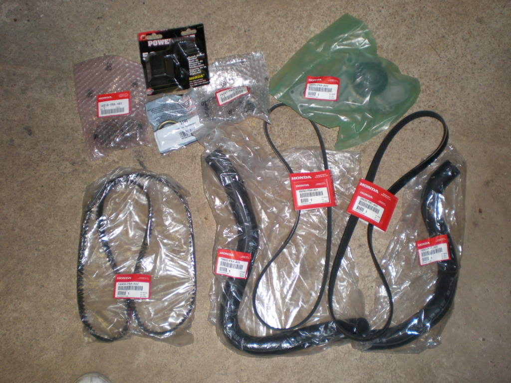 For sale is all of the maintenance parts required for a 100,000 mile tune up. These are all OEM Honda parts and are all brand new and unpackaged. I will also include a brand new Helms manual and tool to counter the pulley nut. <UL> <LI>Timing Belt Adjuster <LI>Timing Belt <LI>Water Pump <LI>Water Pump Gasket <LI>Water Hose (Upper) <LI>Water Hose (Lower) <LI>Thermostat <LI>Thermostat mounting Rubber <LI>Compressor Belt <LI>Power Steering Pump Belt <LI>Tool to take off crank pulley bolt <LI>Crank Seal <LI>Acura TL Helms manual</LI>[/list] Attachment 1621 Attachment 1622 I paid about $450 for all of these parts. $350 + shipping. note: I will not part these out. thanks!Edited by: purekoryo |